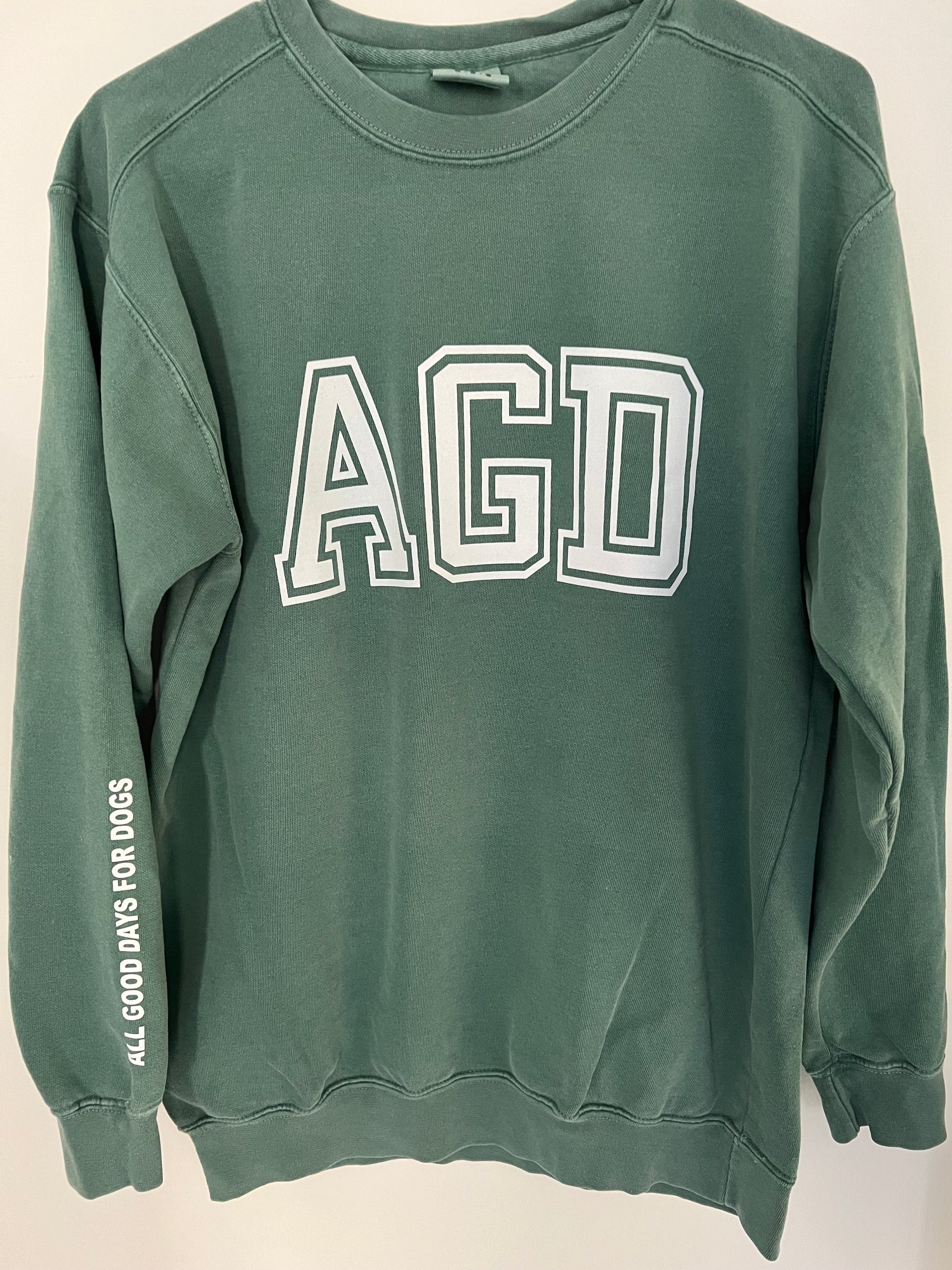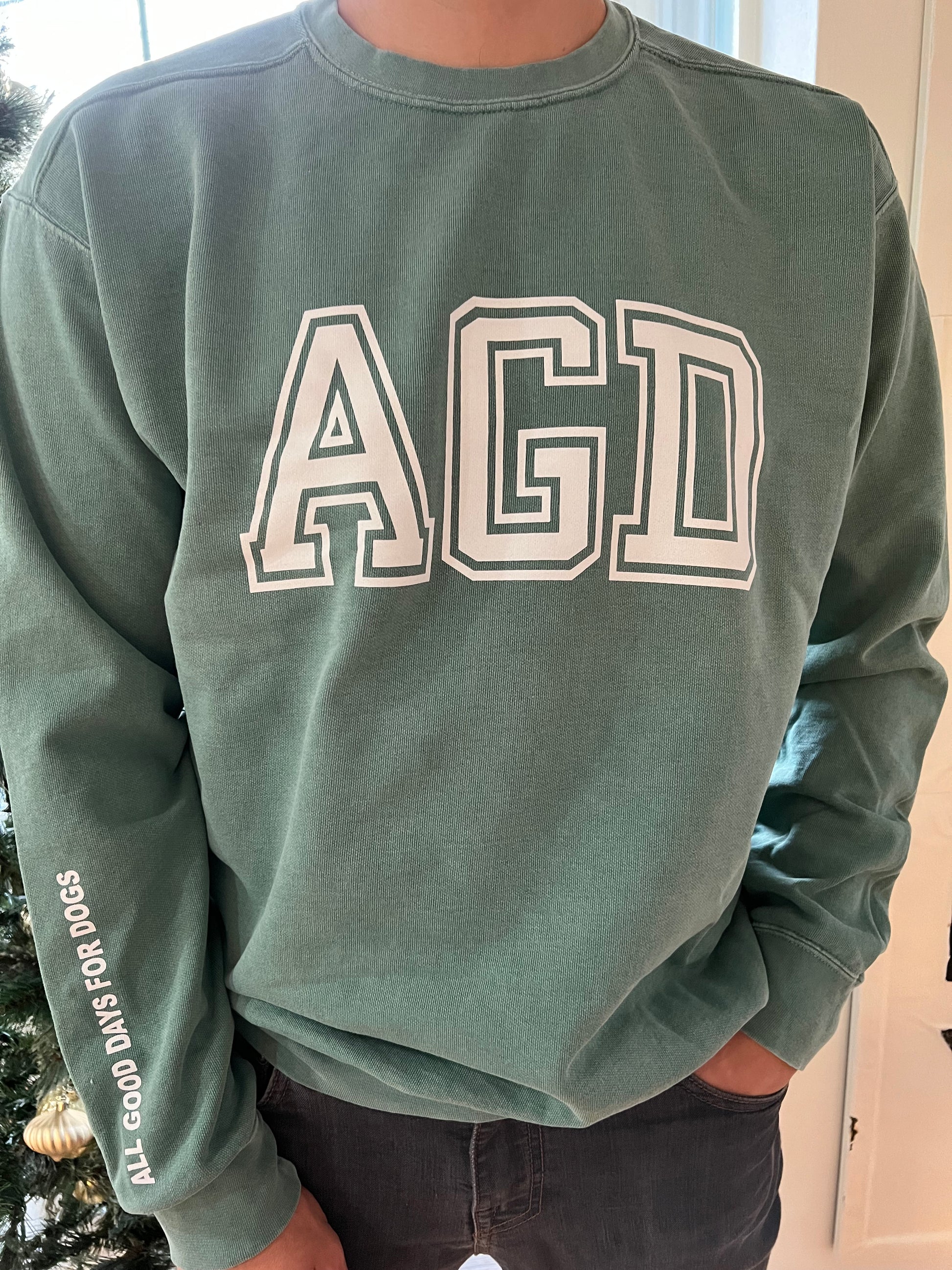 The coziest sweatshirt to wear all year round with our varsity lettering and All Good Days For Dogs sleeve detail.